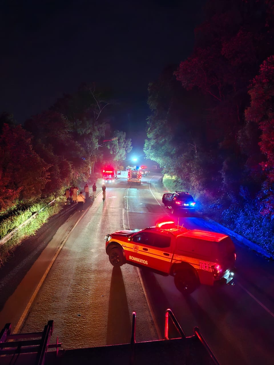 Ao todo, participaram da operação 14 bombeiros militares, sete bombeiros comunitários e sete profissionais do SAMU. As equipes atuaram no resgate das vítimas, na estabilização da cena e na garantia da segurança no local para o trabalho das forças de segurança e perícia.