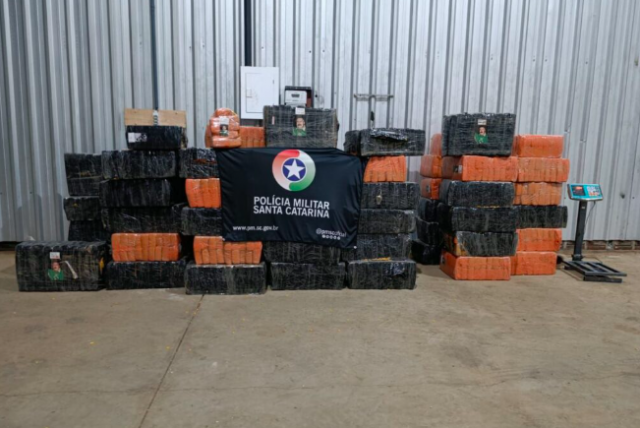 Quase duas toneladas de maconha foram apreendidas pela Polícia Militar de Santa Catarina na madrugada deste sábado (17), em um barracão localizado às margens da rodovia BR-282, no bairro Primavera, em Pinhalzinho, no Oeste catarinense. A ocorrência foi atendida por volta das 4h38 pelo 2º Batalhão de Polícia Militar de Fronteira (2º BPM/Fron).
