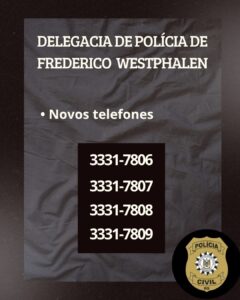 A Polícia Civil divulgou nesta segunda-feira, 7 de abril, os novos telefones para contato. As mudanças aconteceram nas delegacias de Ametista do Sul, Alpestre, Caiçara, Condor, Erval Seco, Frederico Westphalen, Iraí, Jaboticaba, Palmeira das Missões, Palmitinho, Panambi, Pinhal, Planalto, Rodeio Bonito, Seberi, Vicente Dutra e Vista Alegre.