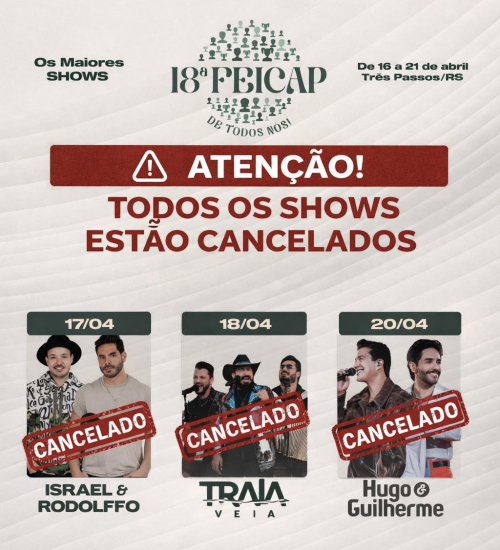 Shows da 18ª FEICAP são cancelados devido a baixa venda de ingressos